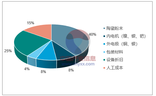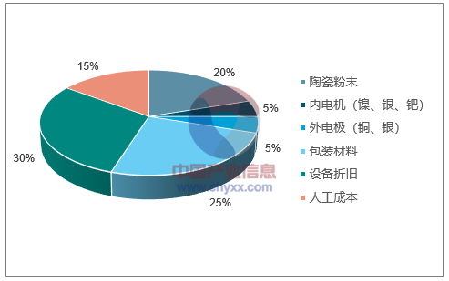 原料構(gòu)成磁粉為主,中低端產(chǎn)品存在差異。在MLCC的成本構(gòu)成方面,直接材料成本占到總成本的60%,人工成本和設(shè)備折舊大約占到總成本的40%左右。直接材料主要包括陶瓷粉末、內(nèi)外電極以及包裝材料。其中陶瓷粉是原材料的主要構(gòu)成部分,低容MLCC和高容MLCC中,陶瓷粉分別占到原料成本的35%和60%;而內(nèi)外電極主要使用銅等金屬材料,在原料成本中的占比約為20%;除此之外,包裝材料(紙板、塑料等)在低容MLCC原料成本中的占比高達(dá)44%,而在高容MLCC中占比僅為6%。