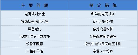 線損是電能傳輸過程中客觀存在的,是不可避免的,但是在實際的運用當中,除了固有的不可改變的電阻、磁抗、電抗等因素外,還存在一些人為技術上的失誤或技術上的落后造成的大量線損,而這些是可以通過技術手段改進的。綜合技術層面存在的問題,結(jié)合最新的電能應用發(fā)展以及電能傳輸規(guī)律,也制定了如下技術措施。