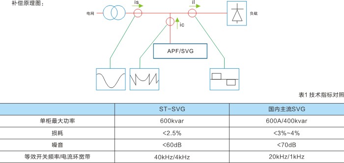 目前在實(shí)際應(yīng)用中,傳統(tǒng)無功補(bǔ)償采用的是慢速開關(guān)器材對(duì)電容器分組投切的方式,存在極差,補(bǔ)償精度差,響應(yīng)速度慢。ST-SVG采用的是由高速開關(guān)器件產(chǎn)生補(bǔ)償電流的方式,不存在補(bǔ)償精度的問題,而且響應(yīng)速度快。