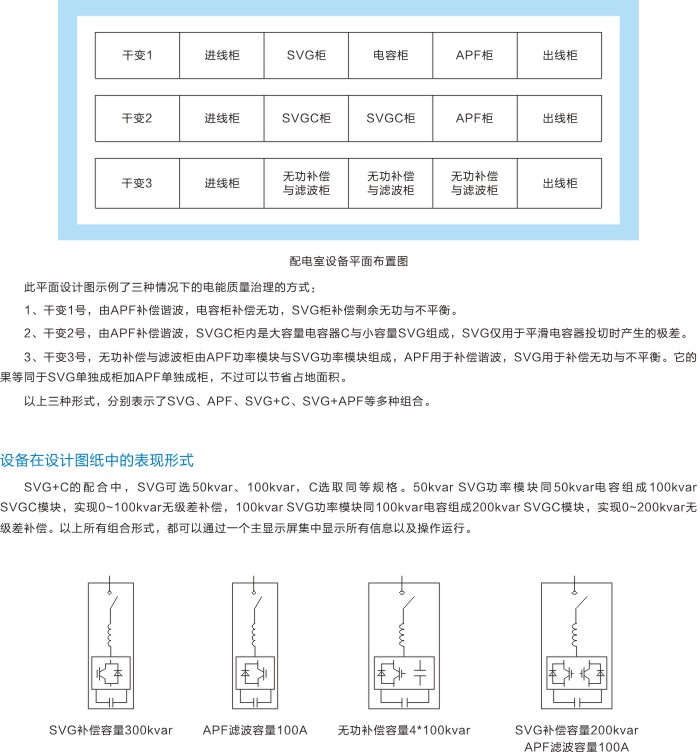 ST-SVG系列低壓靜止無功發(fā)生器通過外部互感器CT,實(shí)時(shí)檢測(cè)電網(wǎng)電流或者負(fù)載電流,控制器通過快速傅里葉變換提取出負(fù)載的基波電流、各次諧波電流,通過dq旋轉(zhuǎn)坐標(biāo)得到有功、無功、負(fù)序等數(shù)據(jù),然后通過IGBT功率變換器產(chǎn)生與補(bǔ)償目標(biāo)(諧波、無功、不平衡)大小相等相位相反的補(bǔ)償電流注入電網(wǎng),實(shí)現(xiàn)對(duì)電網(wǎng)側(cè)的電能質(zhì)量改善功能。